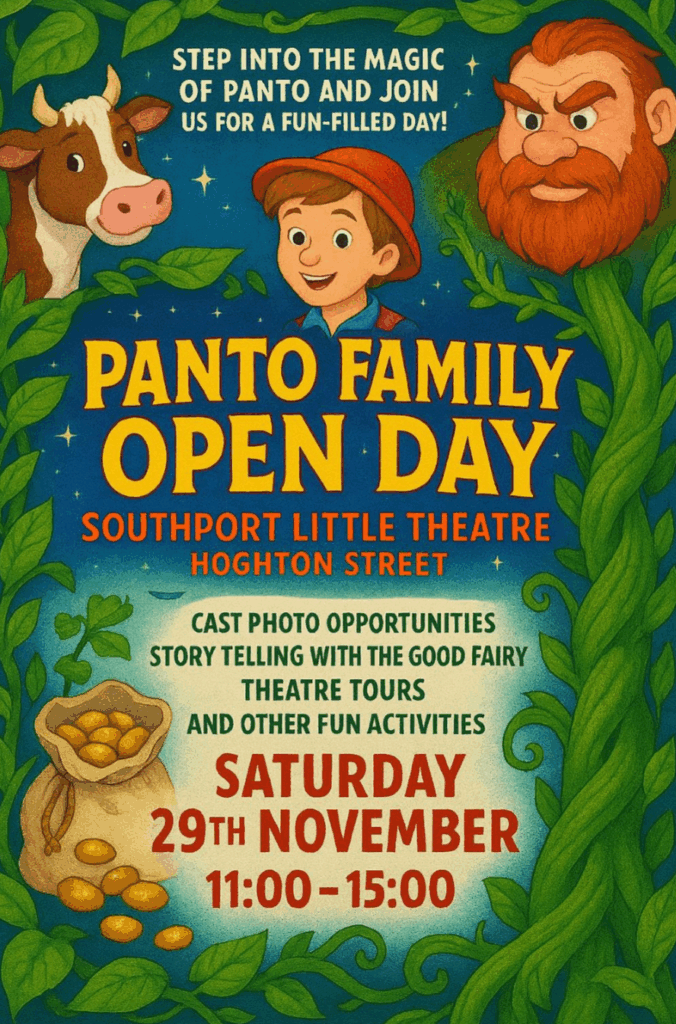 The Little Theatre Southport is hosting a free, family-friendly open day, offering a behind-the-scenes look at our upcoming pantomime, Jack and the Beanstalk. The event invites visitors of all ages to explore the theatre, step on stage, and discover the inner workings of this historic venue.